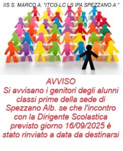 AVVISO: incontro del 16/09/2025 con Dirigente Scolastica e Genitori alunni classi prime sede di Spezzano Albanese - RINVIATO